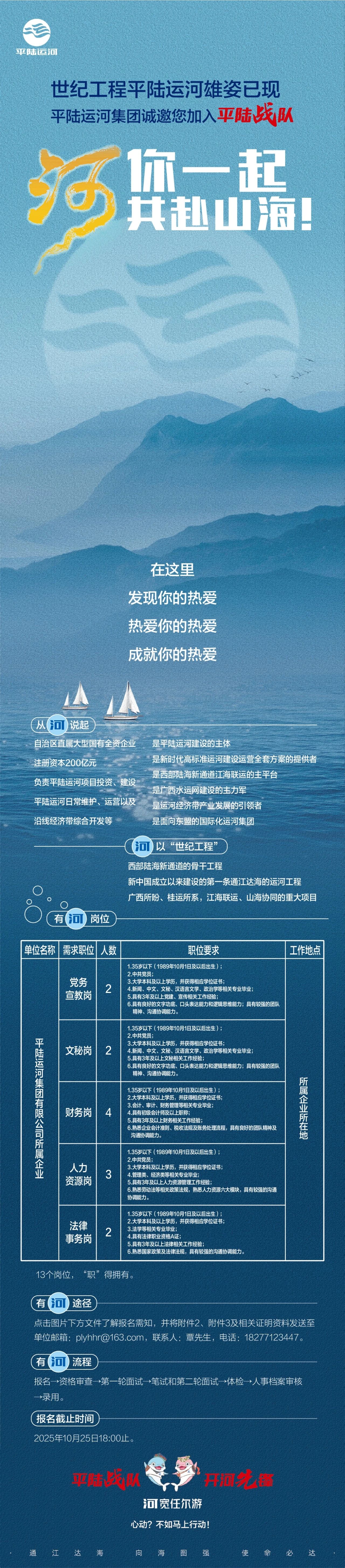 原文標(biāo)題:2025年廣西平陸運(yùn)河數(shù)智科技有限公司下半年社會(huì)公開招聘公告