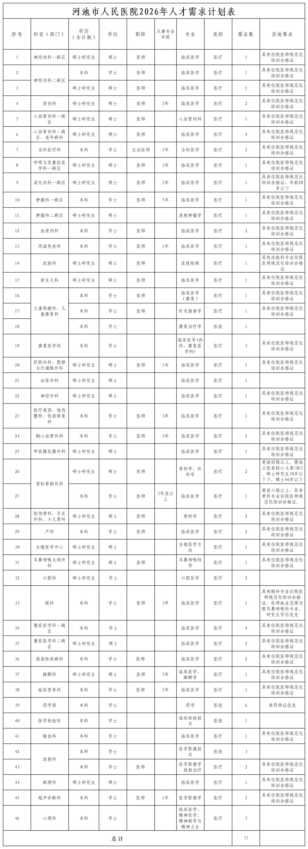 原文標題:【河池市人民醫(yī)院2026年人才招聘公告】尋覓“醫(yī)”家人,共筑健康夢