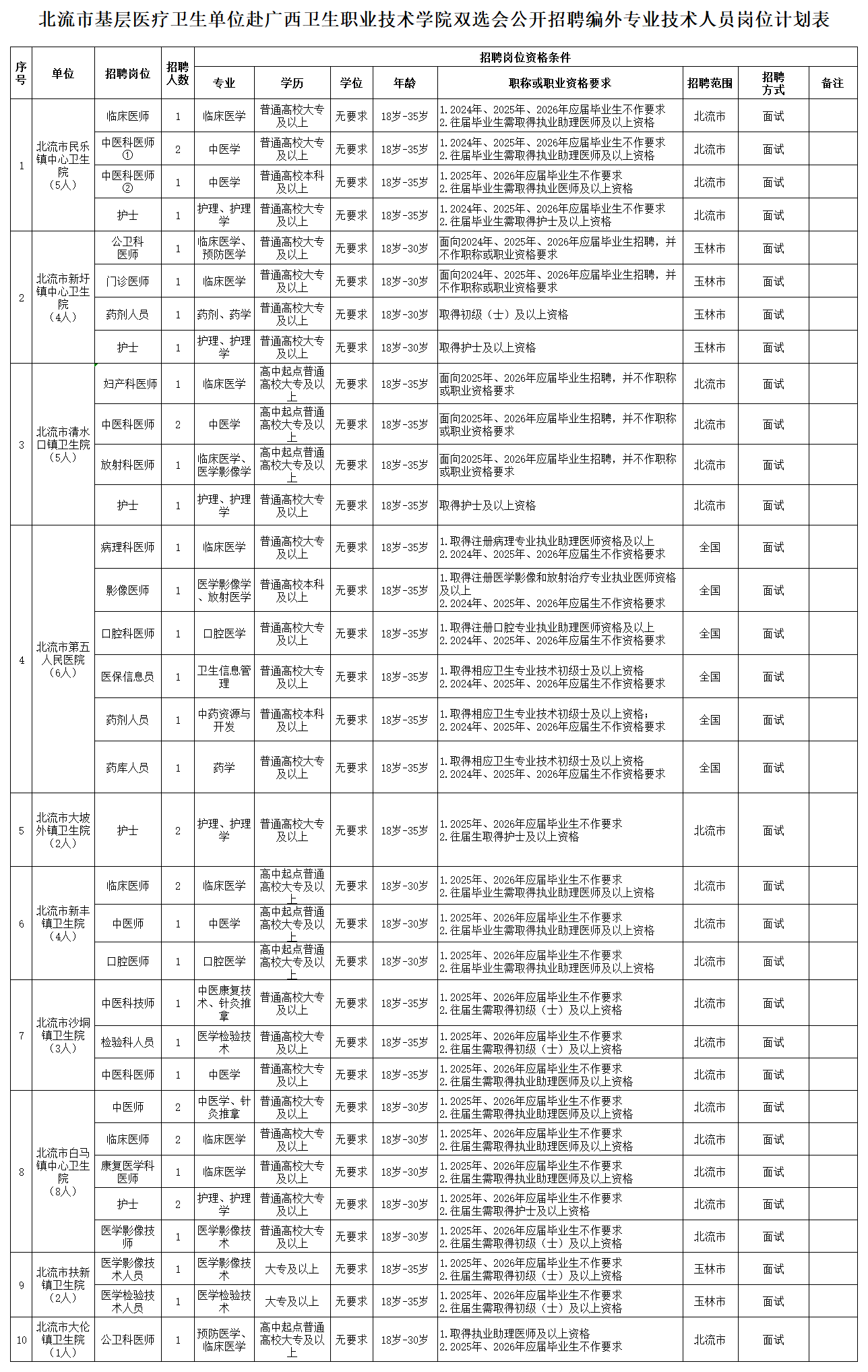 附件:1.北流市基層醫(yī)療衛(wèi)生單位赴廣西衛(wèi)生職業(yè)技術(shù)學(xué)院雙選會公開招聘編外專業(yè)技術(shù)人員崗位計劃表
